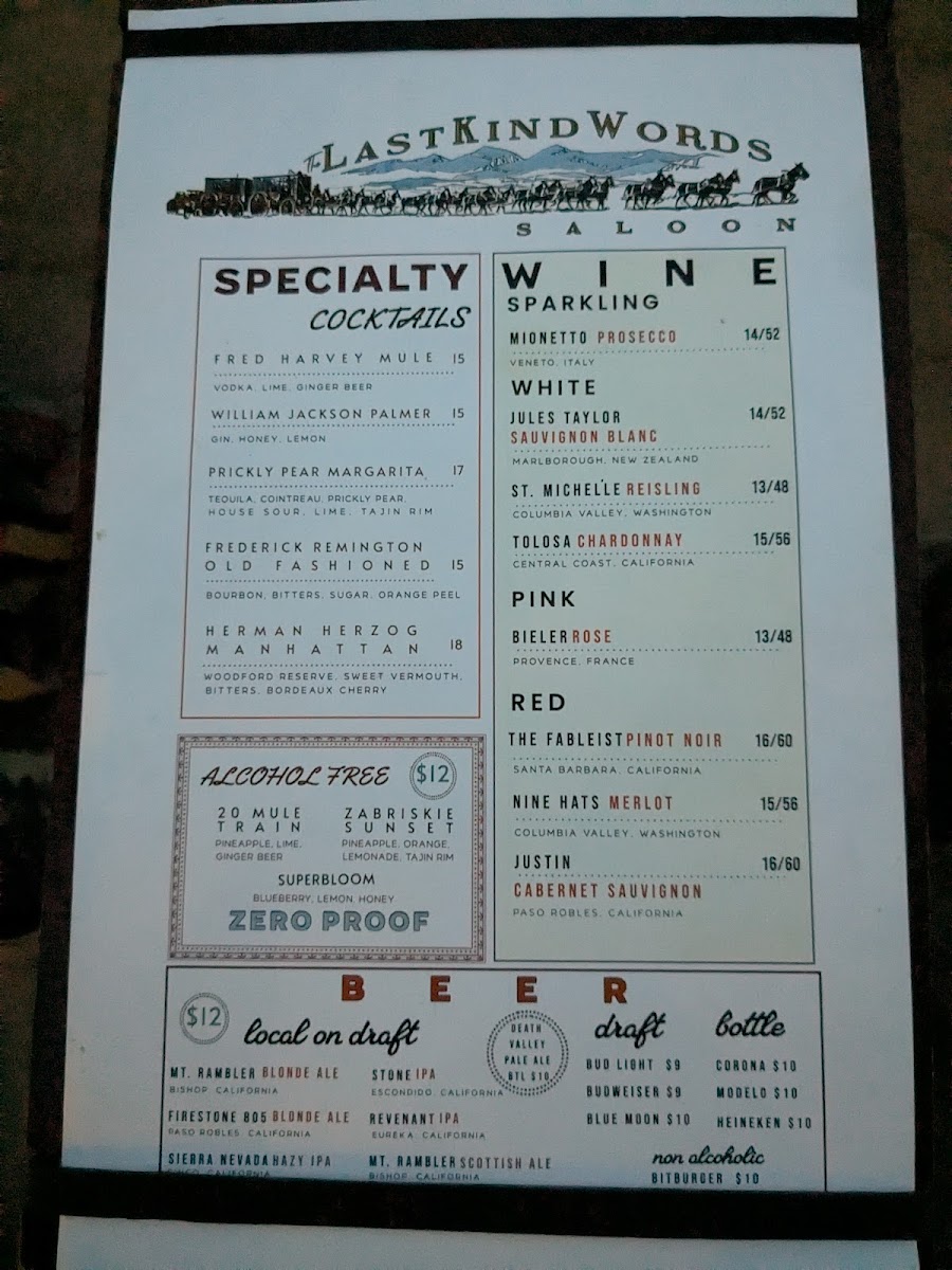 Although some guests felt the establishment could benefit from background music, many are initially drawn in by its authenticity and charm—elements that help create memorable experiences. Regardless of individual tastes, Last Kind Words Saloon stands as a testament to good quality fare made all the more enjoyable by the rustic, natural surroundings of Death Valley.